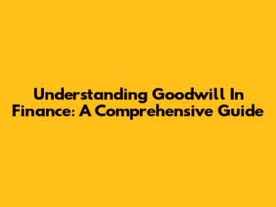 Understanding Goodwill In Finance: A Comprehensive Guide