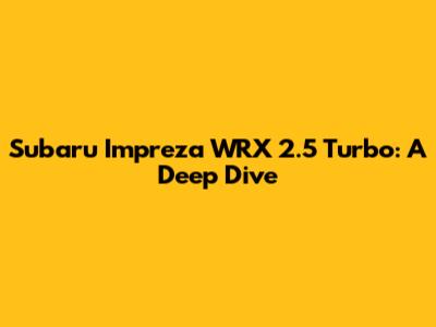 Subaru Impreza WRX 2.5 Turbo: A Deep Dive