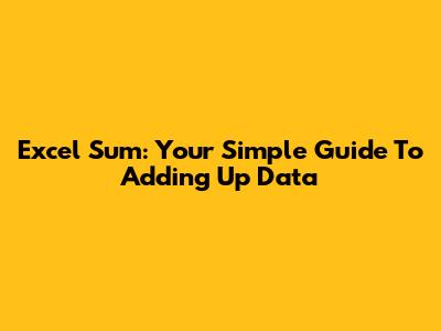 Excel Sum: Your Simple Guide To Adding Up Data