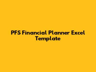 PFS Financial Planner Excel Template