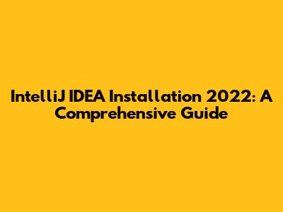 IntelliJ IDEA Installation 2022: A Comprehensive Guide