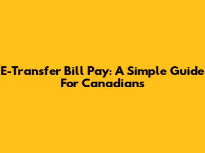 E-Transfer Bill Pay: A Simple Guide For Canadians