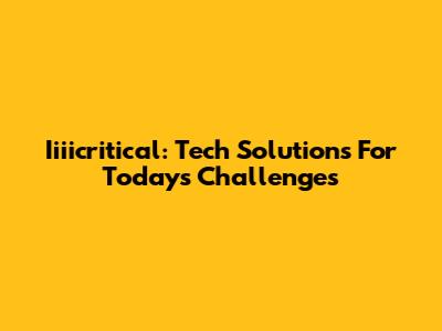 Iiiicritical: Tech Solutions For Today's Challenges
