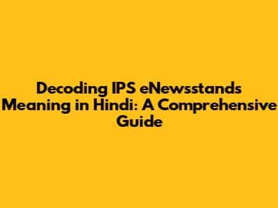 Hey everyone! Let's dive into something that might seem a bit techy at first glance: the meaning of "IPS eNewsstand" in Hindi. For those of you who are curious or just want to understand what it's all about, you're in the right place. We're going to break down this term, explore its relevance, and give you a clear understanding in simple, everyday Hindi. So, grab your chai, get comfy, and let's decode this together!
