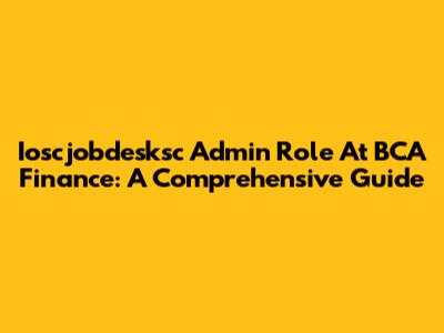 Ioscjobdesksc Admin Role At BCA Finance: A Comprehensive Guide
