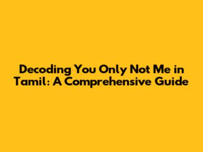 So, let’s get started and understand the core meaning of “You Only Not Me” in Tamil.