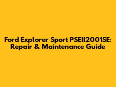 Ford Explorer Sport PSEII2001SE: Repair & Maintenance Guide