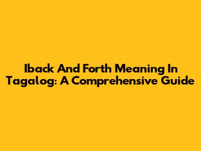 Iback And Forth Meaning In Tagalog: A Comprehensive Guide