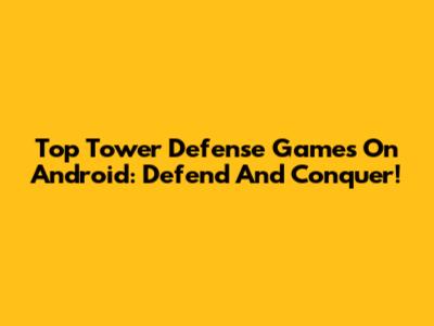 Top Tower Defense Games On Android: Defend And Conquer!