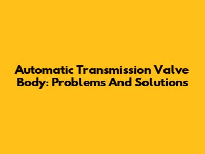 Automatic Transmission Valve Body: Problems And Solutions