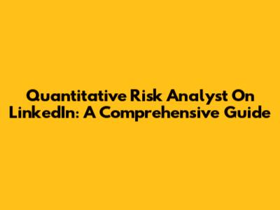Quantitative Risk Analyst On LinkedIn: A Comprehensive Guide