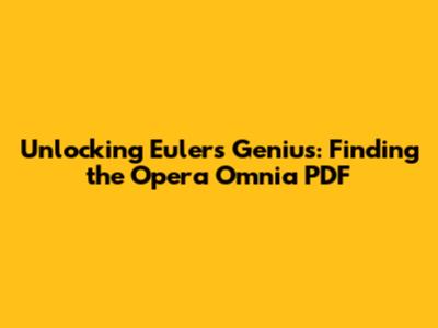 Finding the Opera Omnia Euler PDF: Your Digital Treasure Hunt