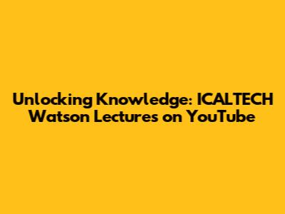 Finding the ICALTECH Watson Lectures is super easy! The primary way to access them is through their official YouTube channel. Simply search for