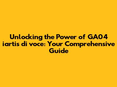 Hey guys! Ever heard of GA04 iartis di voce? If you're scratching your head, no worries, you're in the right place! We're diving deep into everything you need to know about this fascinating topic. This guide is your one-stop shop for understanding what GA04 iartis di voce is all about, why it matters, and how you can get in on the action. So, buckle up, because we're about to embark on an exciting journey filled with interesting insights and practical tips. Let's get started!