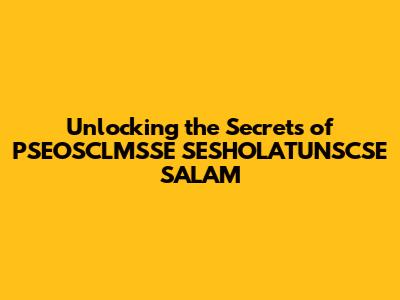 Why PSEOSCLMSSE SESHOLATUNSCSE SALAM Matters: The Impact