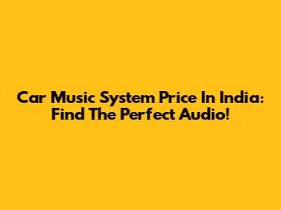 Car Music System Price In India: Find The Perfect Audio!