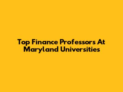 Top Finance Professors At Maryland Universities
