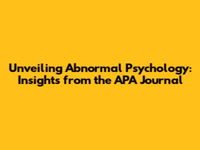 Hey folks, ever wondered about the intricacies of the human mind when things go a bit sideways? That's where abnormal psychology steps in, and the Journal of Abnormal Psychology (JAP), published by the American Psychological Association (APA), is your go-to source. This journal isn't just a collection of research papers; it's a deep dive into the complex world of mental health, offering invaluable insights into the causes, diagnosis, and treatment of various psychological disorders. Let's take a closer look, shall we?