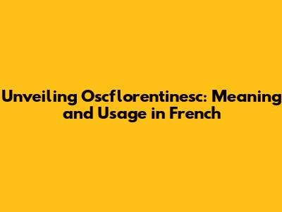 Hey guys! Ever stumbled upon the term "oscflorentinesc" and wondered what in the world it means in French? Well, you're in the right place! We're diving deep into the fascinating world of this French word (or phrase!), exploring its origins, its nuances, and how you might actually use it in a conversation. Buckle up, because we're about to embark on a linguistic adventure. This article will break down everything you need to know about "oscflorentinesc," ensuring you understand its context and can potentially use it yourself. Let's get started, shall we?