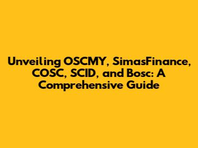 Hey guys, let's dive into the fascinating world of OSCMY, SimasFinance, COSC, SCID, and Bosc! These terms might seem like alphabet soup at first, but fear not! I'm here to break down each of them, providing you with a clear understanding of what they are and why they matter. We'll explore their significance, how they function, and their potential impact. So, grab your favorite beverage, get comfy, and let's unravel this together. This guide is designed to be your go-to resource, whether you're a seasoned investor, a curious student, or just someone who enjoys learning new things. I'll be using a casual and friendly tone, making complex topics easy to digest. Let's start with a general overview to set the stage for our more in-depth exploration. Ready? Let's go!