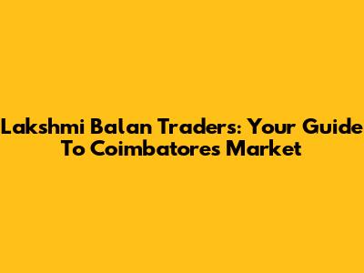 Lakshmi Balan Traders: Your Guide To Coimbatore's Market