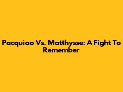 Pacquiao Vs. Matthysse: A Fight To Remember