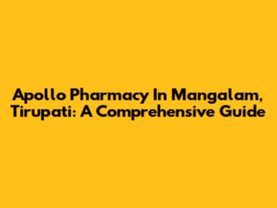Apollo Pharmacy In Mangalam, Tirupati: A Comprehensive Guide