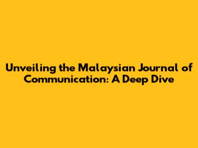 Exploring the Malaysian Journal of Communication: What's It All About?