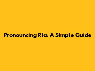 Pronouncing Ria: A Simple Guide