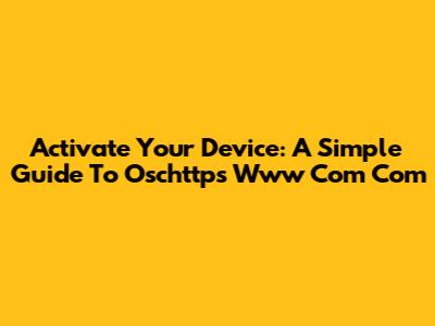 Activate Your Device: A Simple Guide To Oschttps Www Com Com