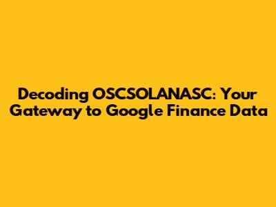 OSCSOLANASC isn't just a random string of characters; it's a specific identifier used within Google Finance and other financial platforms. It represents a particular stock, investment fund, or other financial instrument. This code is the key you'll use to unlock specific data points. By understanding and utilizing these codes, you can automate data retrieval, perform in-depth analysis, and build custom financial dashboards. Learning about OSCSOLANASC empowers you to become a more informed investor. Grasping this concept allows you to bypass manual data entry, saving you time and reducing the risk of human error. It also opens up the ability to create and customize financial models. You can tailor your analysis to your specific investment needs and risk tolerance. Ultimately, mastering OSCSOLANASC is about gaining control over the data that drives your investment decisions and helps improve your financial results. The journey isn't just about understanding the code, but about leveraging its power for your financial betterment. Remember, knowledge is power, and in the world of finance, this statement rings especially true.