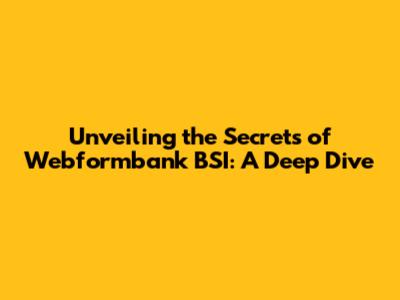 What Exactly is Webformbank BSI?