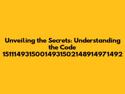 Hey there, data enthusiasts! Ever stumbled upon a seemingly random string of numbers and wondered, "What in the world does this even mean?" Well, today, we're diving deep into the intriguing world of codes, specifically focusing on the sequence: 15111493150014931502148914971492. Don't worry, we'll break it down into digestible pieces, making sure you grasp its meaning and potential significance. Think of it as a digital treasure hunt – we're the explorers, and this number string is our map! This code, seemingly cryptic at first glance, likely holds valuable information, perhaps related to a transaction, a specific event, or a unique identifier within a larger system. Understanding its context is key, and we'll explore different possibilities to give you a comprehensive overview. The beauty of these codes lies in their ability to encapsulate complex data in a concise format, enabling efficient storage, retrieval, and processing of information. Consider them as the building blocks of the digital world, each one contributing to the intricate structures we interact with daily. Let's get started on this exciting journey of deciphering this fascinating number sequence. Understanding the nuances of these codes can open doors to new insights and a deeper appreciation of the digital landscape. Let's together pull back the curtain and find out the meaning of this code. Are you ready to unravel the mystery? Let's dive in!