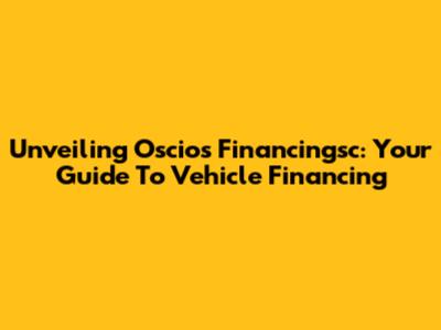 Unveiling Oscios Financingsc: Your Guide To Vehicle Financing