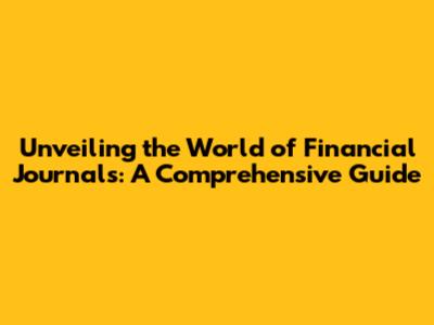 Hey guys! Ever wondered about the mysterious world of financial journals? They're like the secret diaries of the financial world, filled with insights, analysis, and data that can help you understand everything from the stock market to global economics. In this article, we're diving deep into the different types of financial journals, exploring what makes them tick, and why they're so important. Whether you're a seasoned investor, a budding finance enthusiast, or just curious about how the financial world works, this guide is for you. We'll break down the jargon, explore the key players, and give you the lowdown on how to get the most out of these essential resources. So, buckle up, grab your coffee, and let's unravel the fascinating world of financial journals!