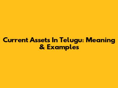Current Assets In Telugu: Meaning & Examples