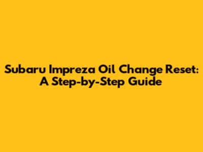 Subaru Impreza Oil Change Reset: A Step-by-Step Guide