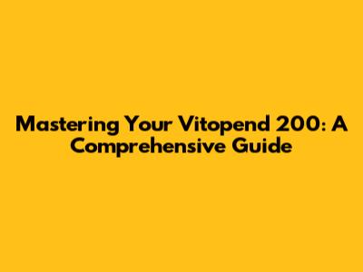Getting Started: Understanding Your Vitopend 200