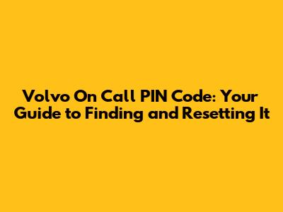 Understanding the Volvo On Call PIN Code