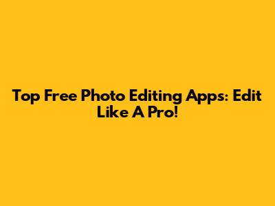 Top Free Photo Editing Apps: Edit Like A Pro!