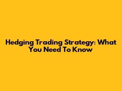 Hedging Trading Strategy: What You Need To Know
