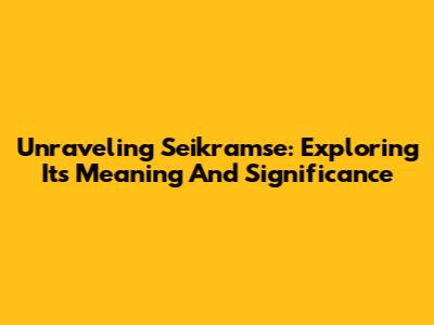 Unraveling Seikramse: Exploring Its Meaning And Significance