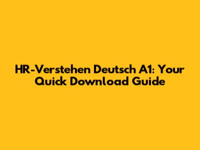 HR-Verstehen Deutsch A1: Your Quick Download Guide