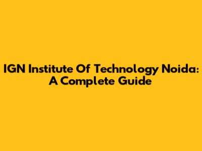 IGN Institute Of Technology Noida: A Complete Guide