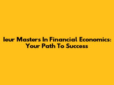 Ieur Master's In Financial Economics: Your Path To Success
